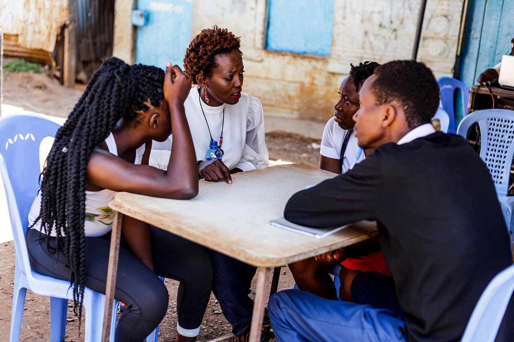 Milka Wahu, director of Amka Africa Justice Initiative, an LEF grantee, works with local residents from the Dandora district of Nairobi, Kenya, during a legal clinic hosted by her organization in October 2024. Photo: Michael Owino