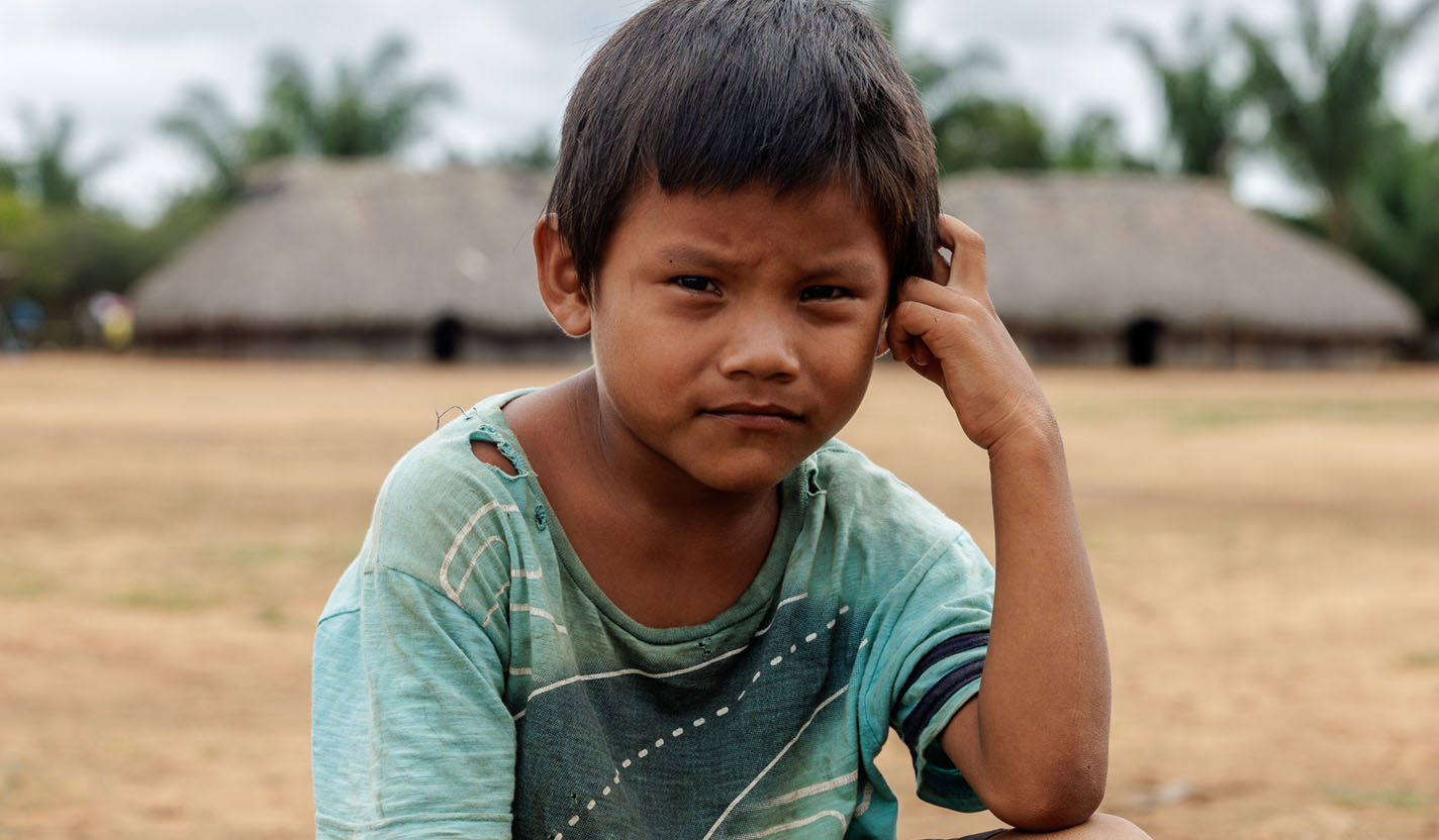 Fotografia: Jenifer VelosoMairutá Kayabi faz uma pausa para uma foto enquanto brinca do lado de fora.